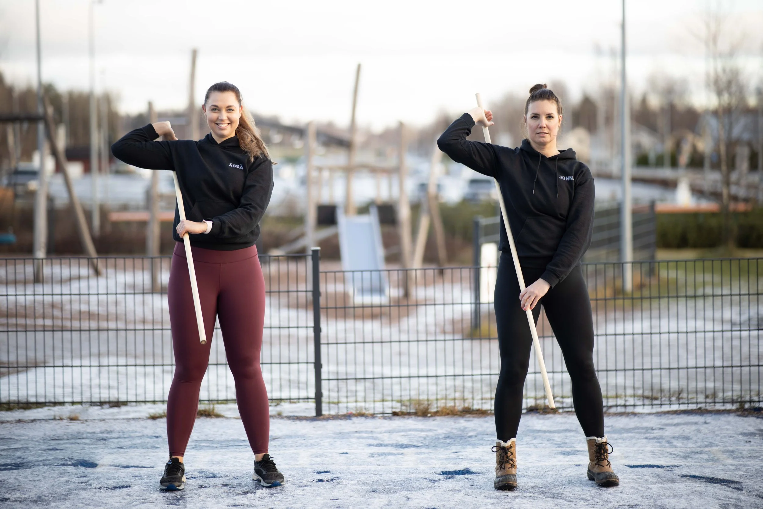 — Välineinä mahdollisuus käyttää kuminauhoja ja keppejä